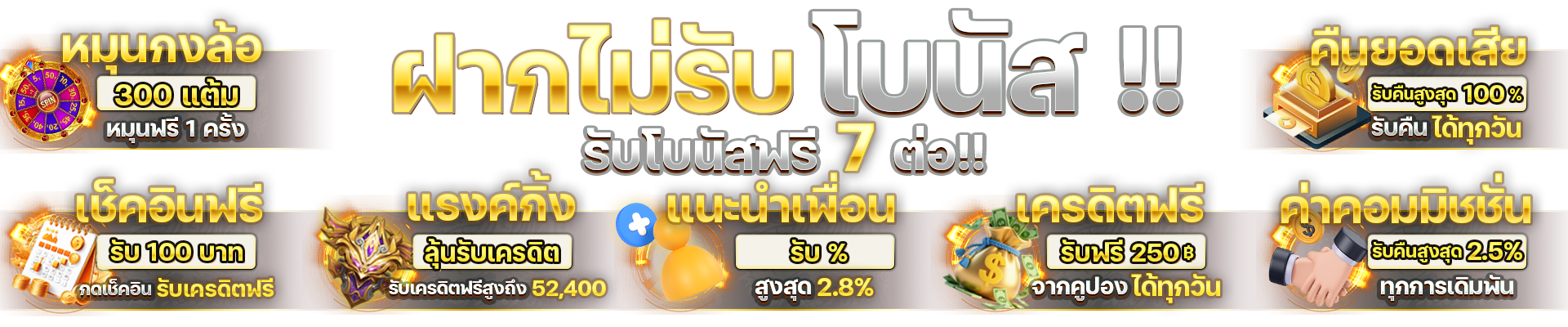 ตอบ : โบนัสต้อนรับ 100% สำหรับการฝากครั้งแรก - เครดิตฟรีสำหรับสมาชิกใหม่ - แนะนำเพื่อนรับค่าคอมมิชชั่น - คืนยอดเสียรายสัปดาห์